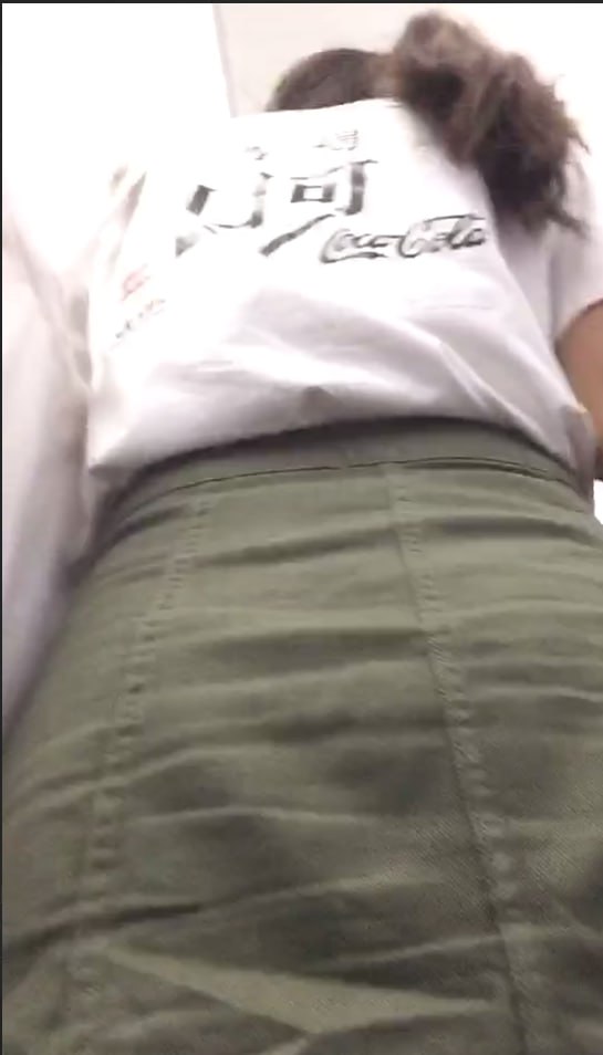 扶梯绿裙小姐姐上升,粉色内裤勒进私处被低角度抄底全露
