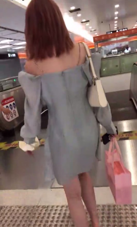 超美OL下班吃饭到地铁回家,全程灰裙下白色内裤紧勒翘臀被低角度抄底全露