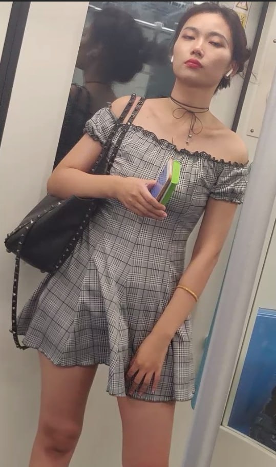 地铁尾随电梯偷拍抄底!格子裙小姐姐私处真空,鲍鱼全露肉缝清晰