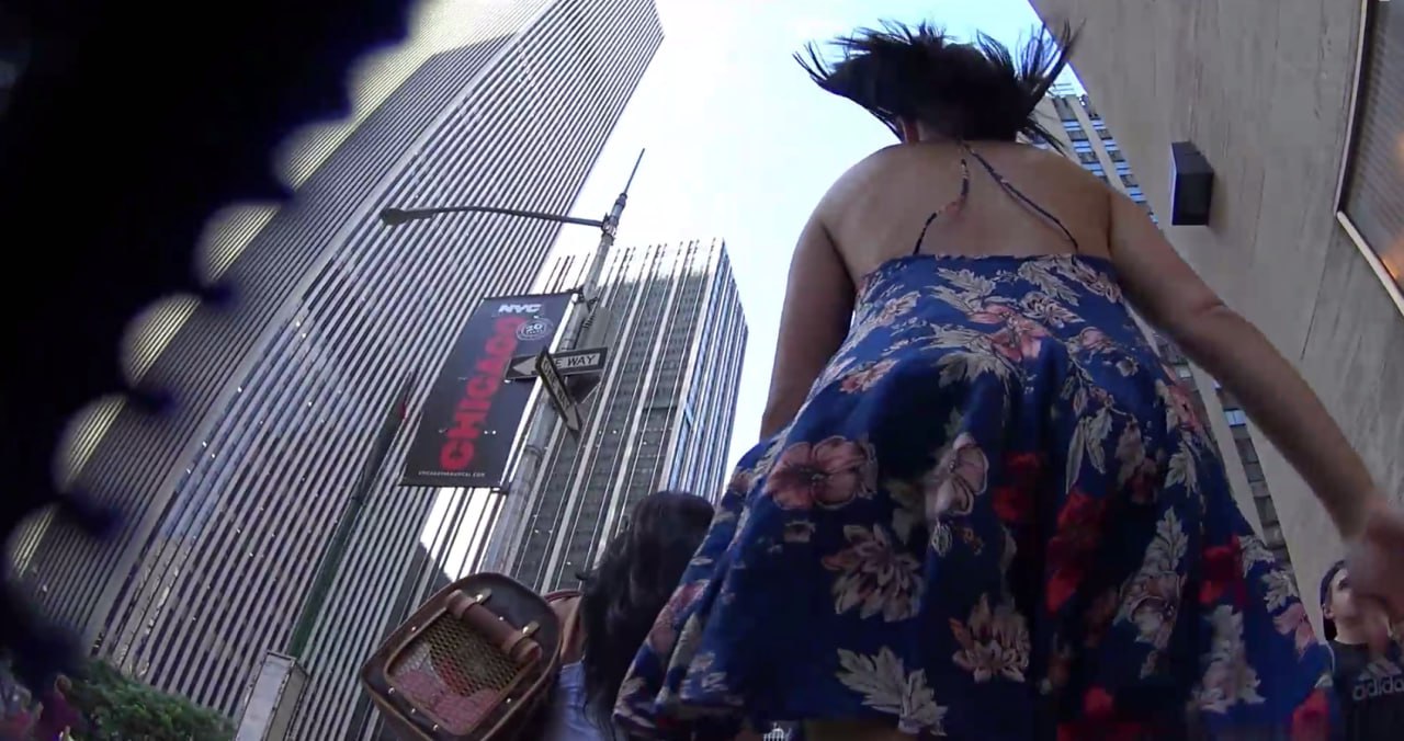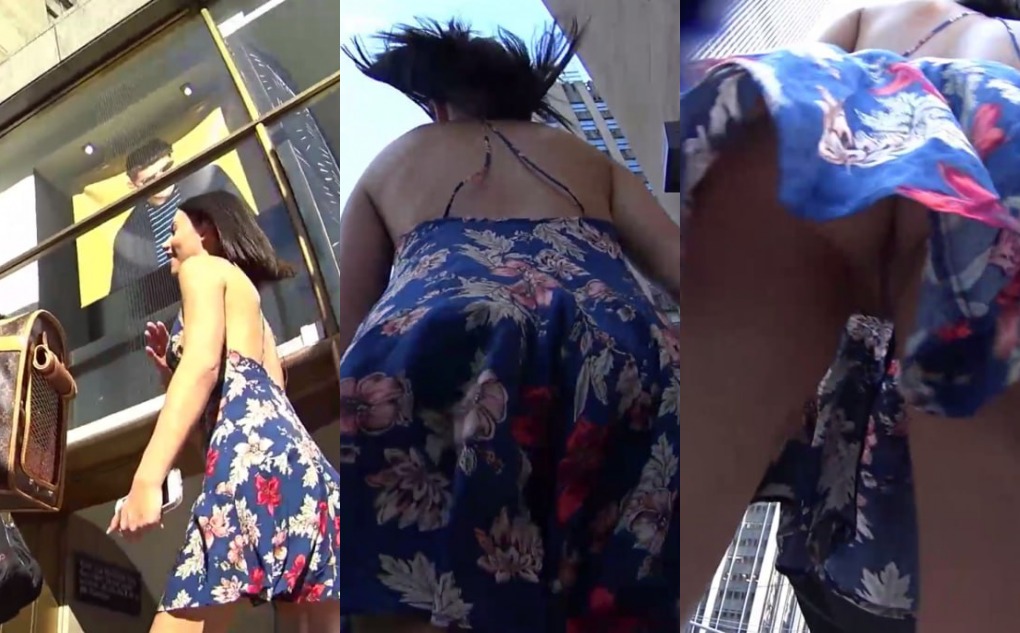 街道露背碎花裙美女抄底偷拍!无内鲍鱼全裸外露,粉嫩肉唇饱满阴毛稀疏腿缝晃动春光爆棚