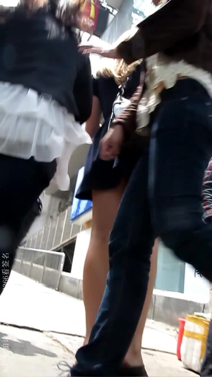 街拍无内金发美女抄底偷拍!深蓝吊带裙底私处全裸,鲍鱼肉缝粉嫩腿根白皙春光大泄
