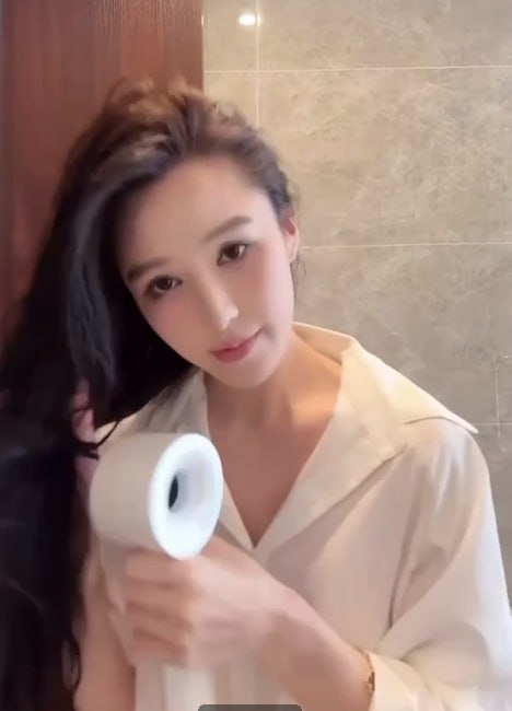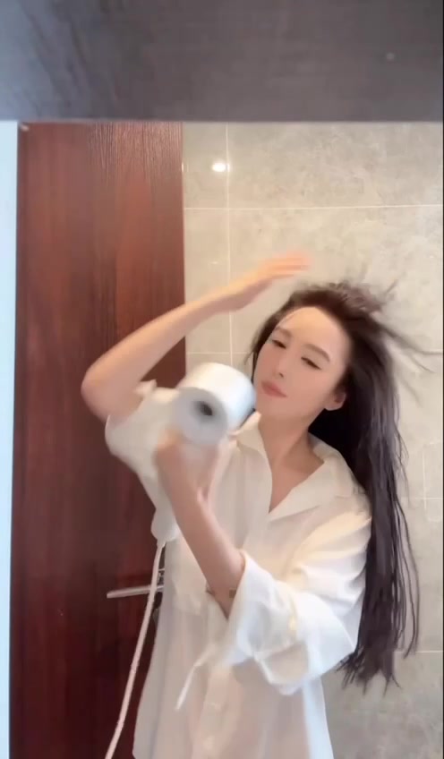 吹风机下长发乱舞!炭炭23岁浴室白衬衫性感自拍,眼神太会了~