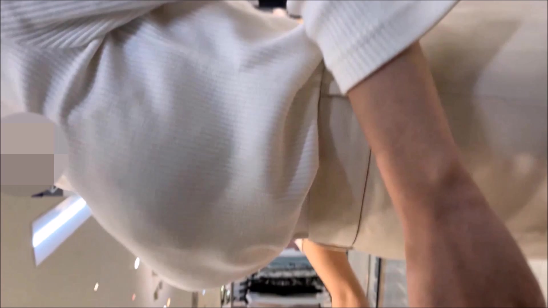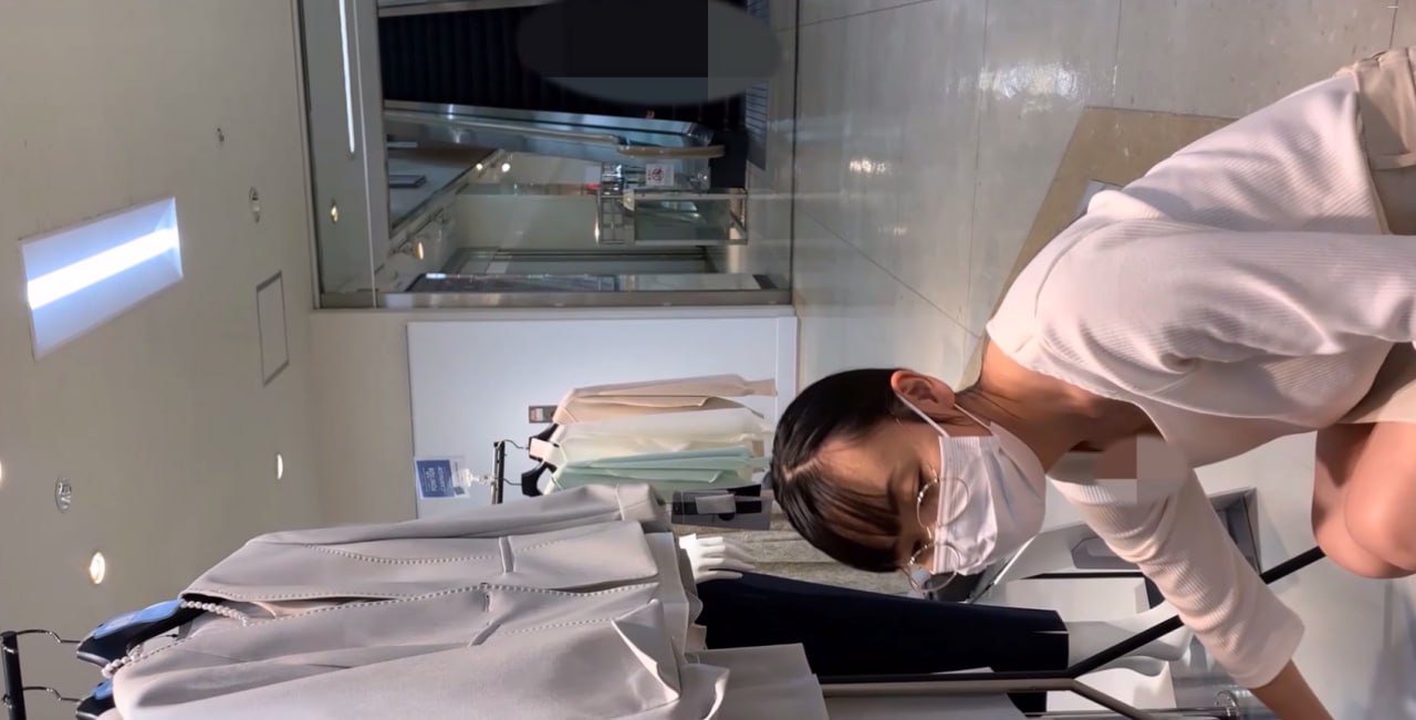 商场眼镜导购美女上下齐抄!弯腰露深沟奶子晃动,短裙底白色内裤紧勒鲍鱼轮廓腿缝春光全泄