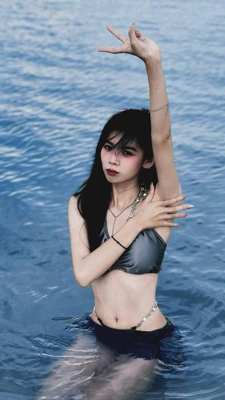池边夜色黑纱透视短裙,湿透内裤勾勒阴唇,长发滴水眼神淫贱求被水里操翻