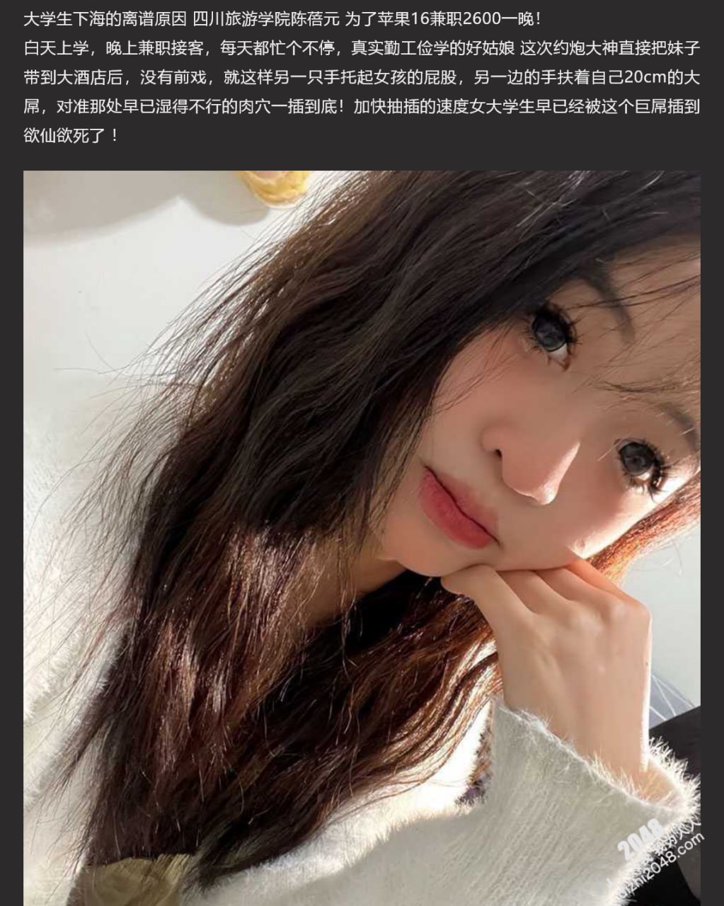 大学生下海的荒唐理由!四川旅游学院校花陈蓓元,竟为了苹果16,兼职一晚2600,惊掉下巴的反差人生