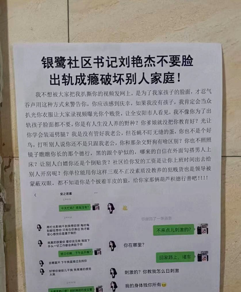 河南安阳文峰银鹭社区党书记刘艳杰出轨人夫!被其原配发现曝光,聊天记录尺度辣眼!