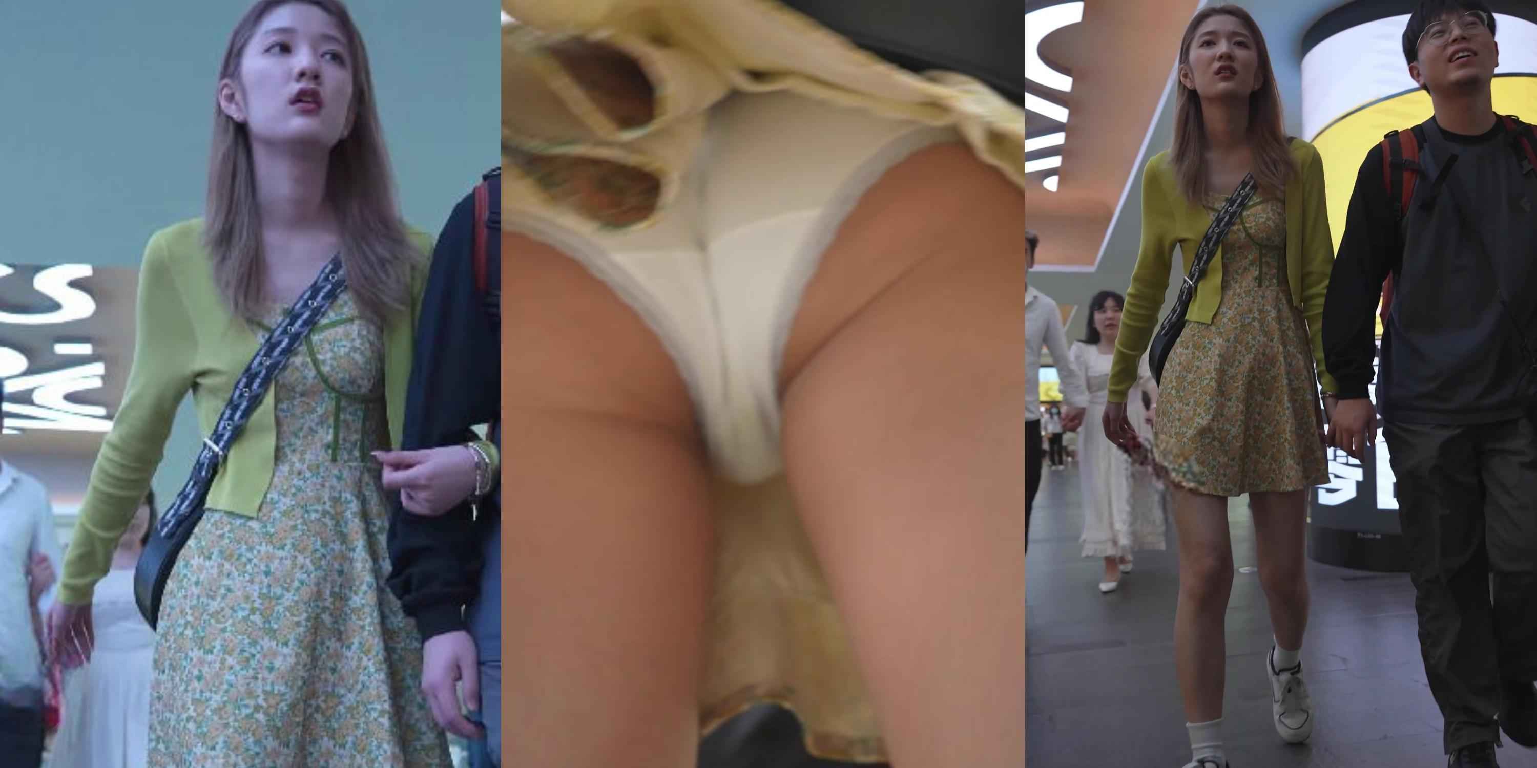 商场白裙甜妹无防备抄底!白色内裤紧贴私处肉缝,裙底春光全漏,谁