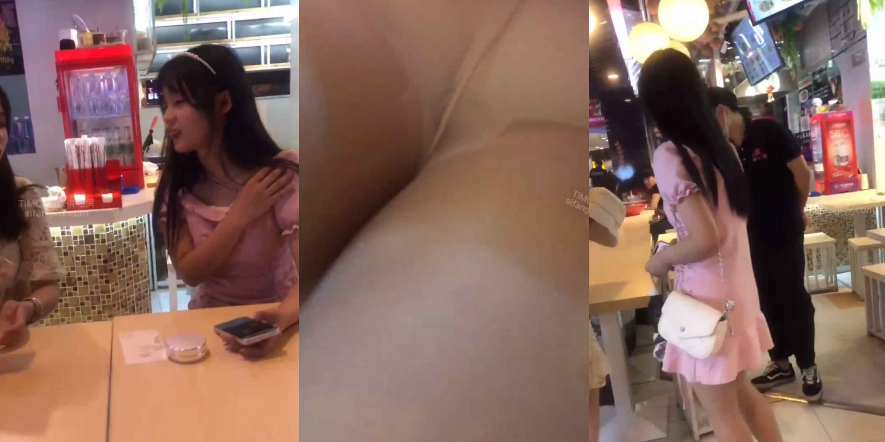 和男友逛街!裙底白色内裤被翘臀勒成细线,腿根春光全漏