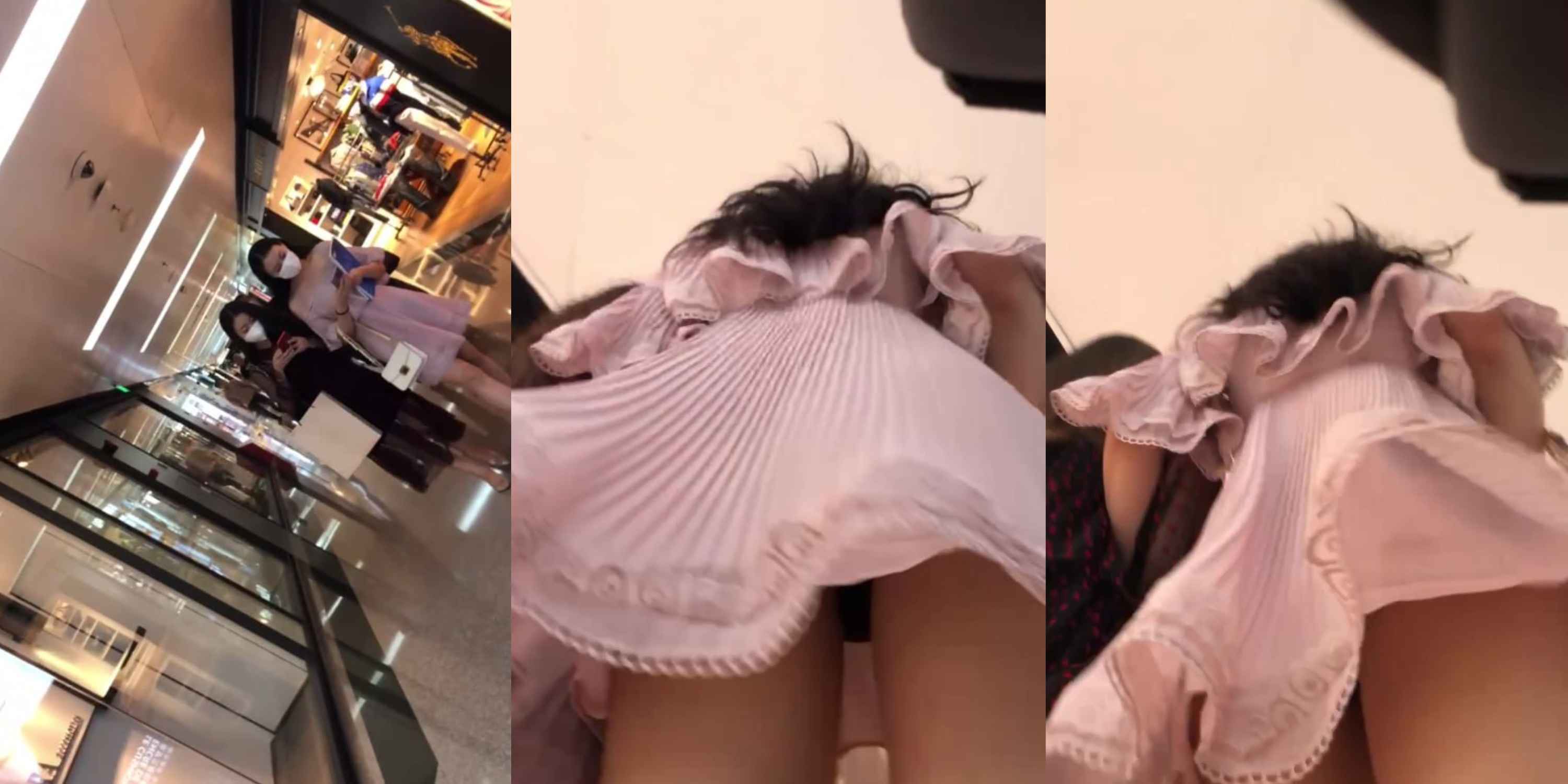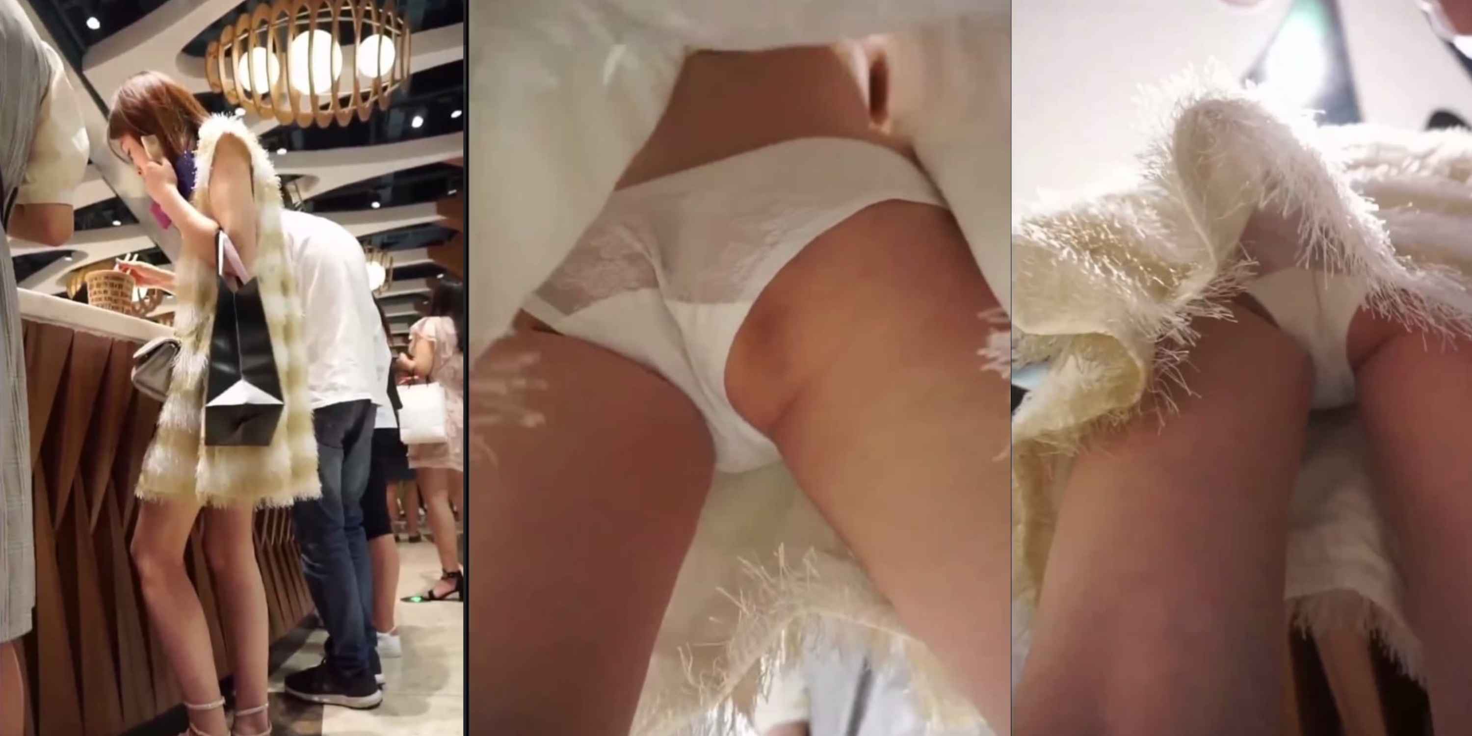 商场排队,裙底浅色内裤紧勒翘臀被低角度抄底全露