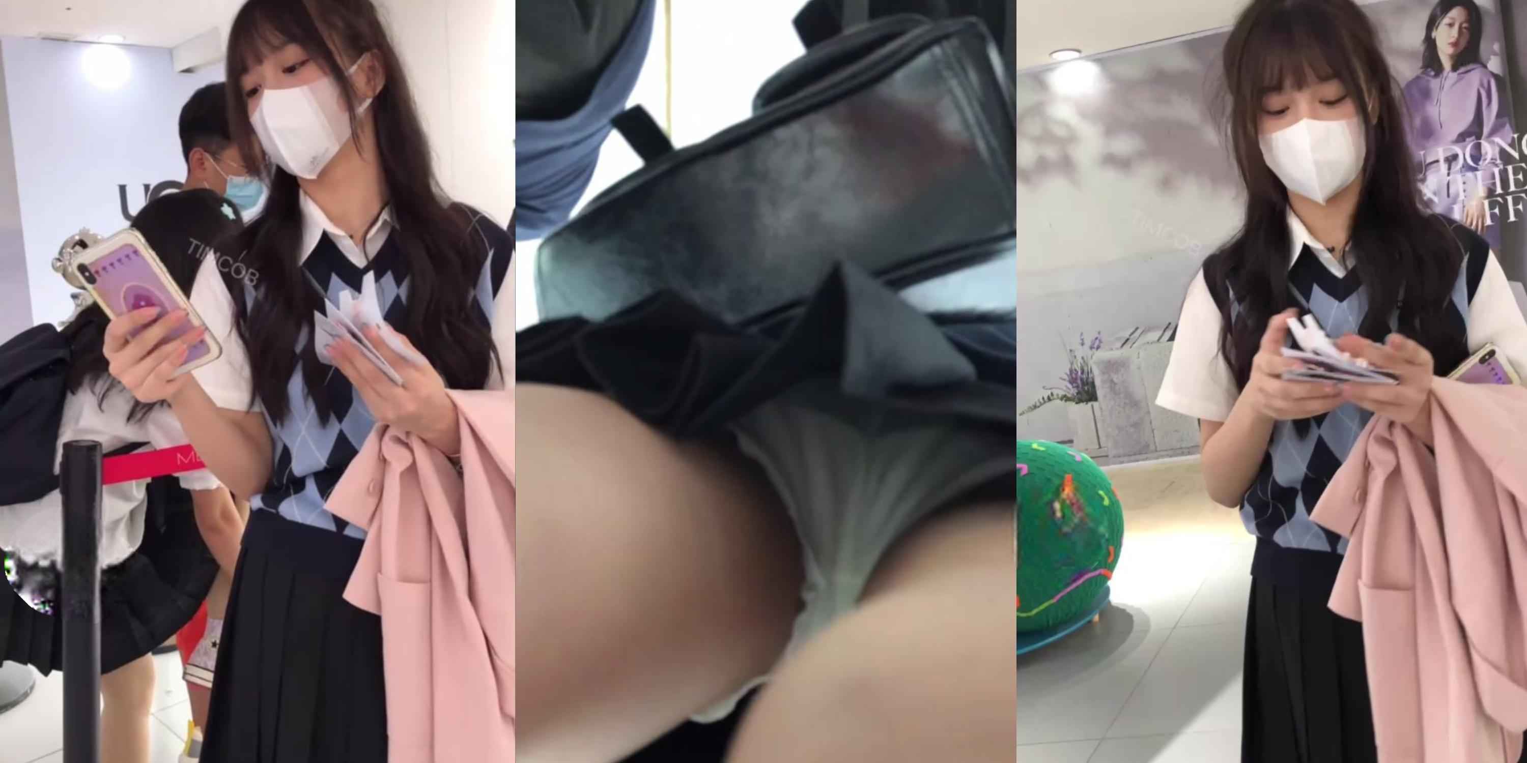 颜值逆天极品学生妹逛街,黑百褶裙下