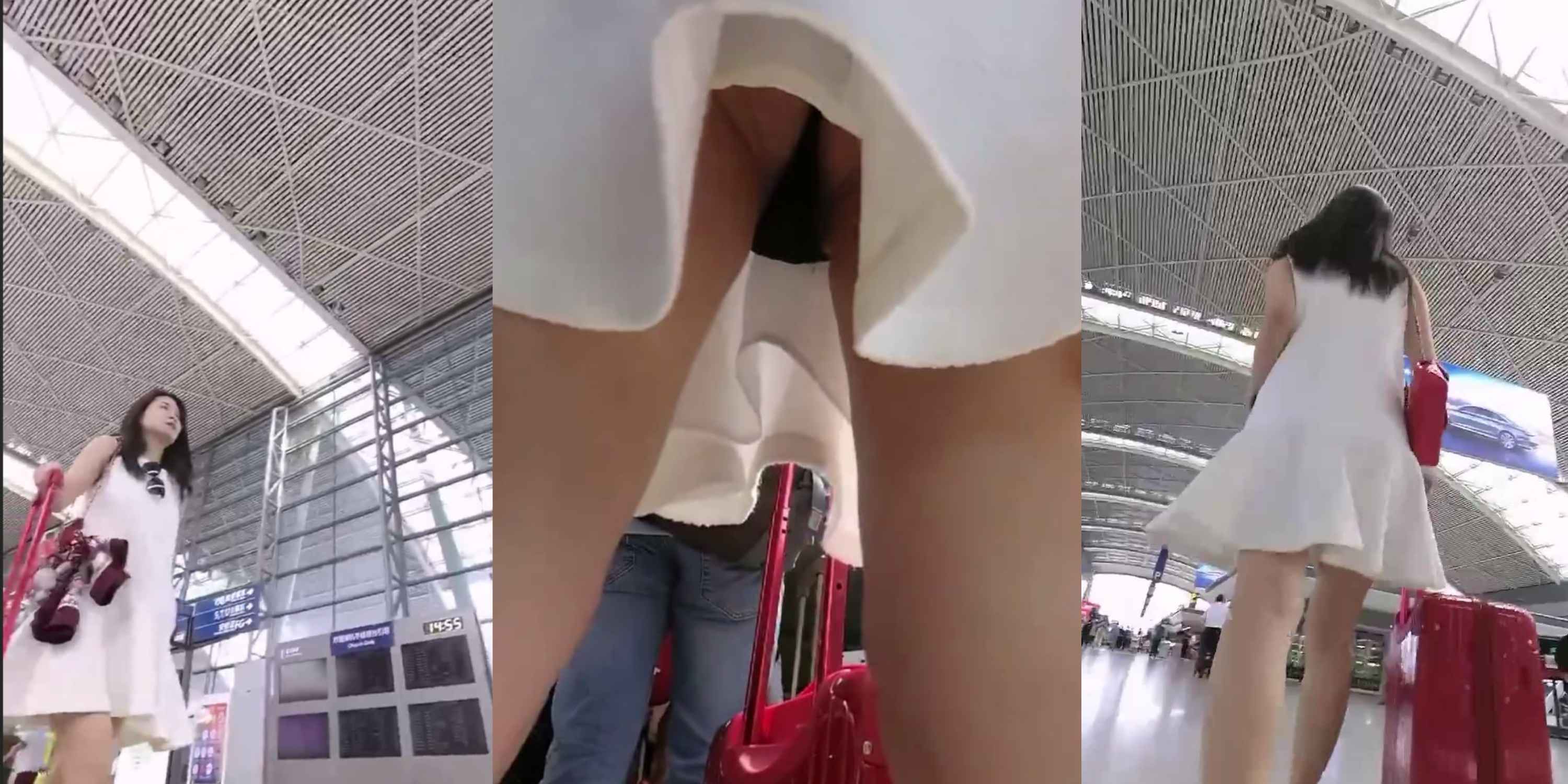 没穿内裤,裙底私处直接被低角度抄底全露
