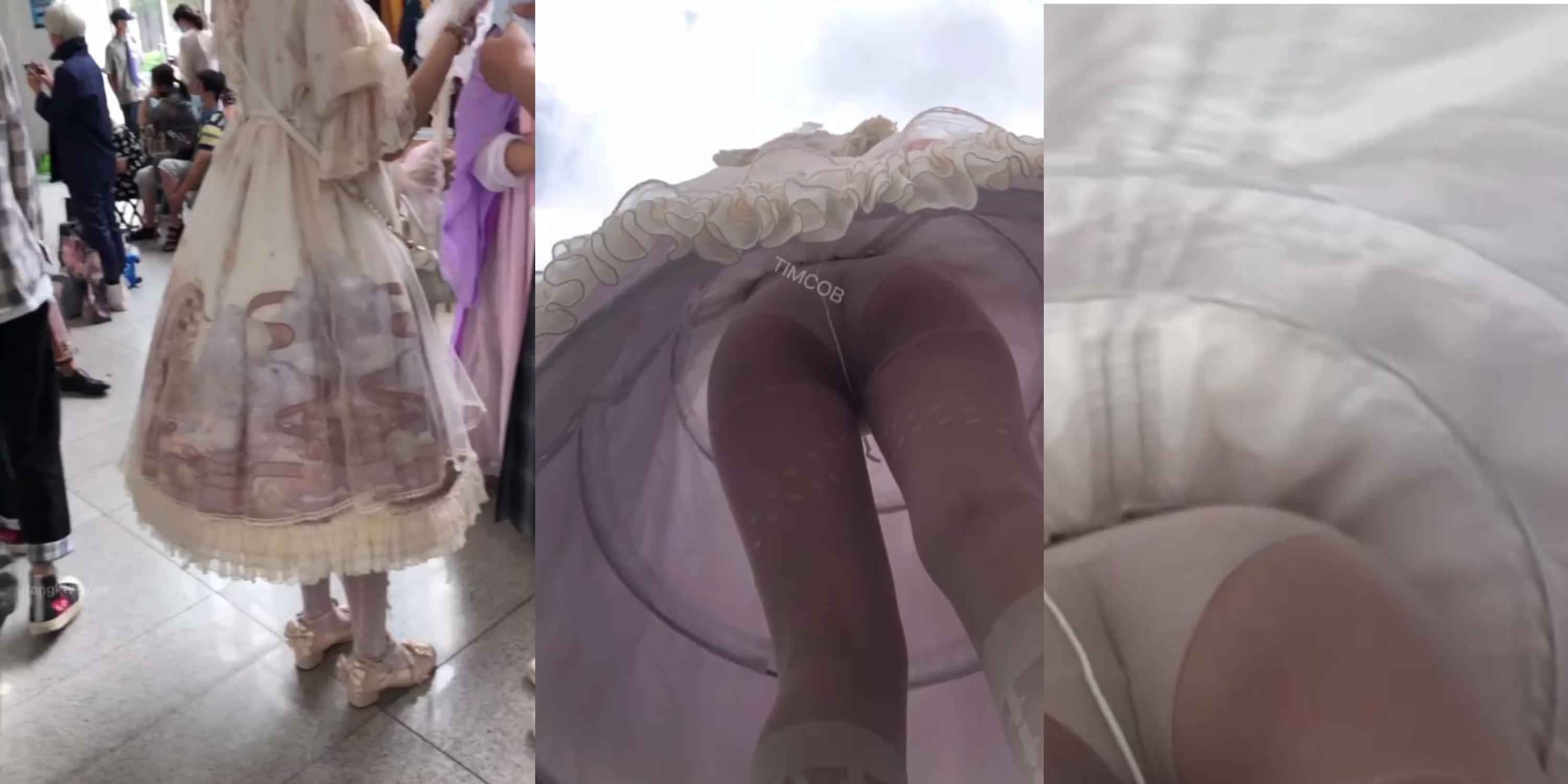 裙小姐姐,层层纱裙下透明内裤黑森林直接抄底全现
