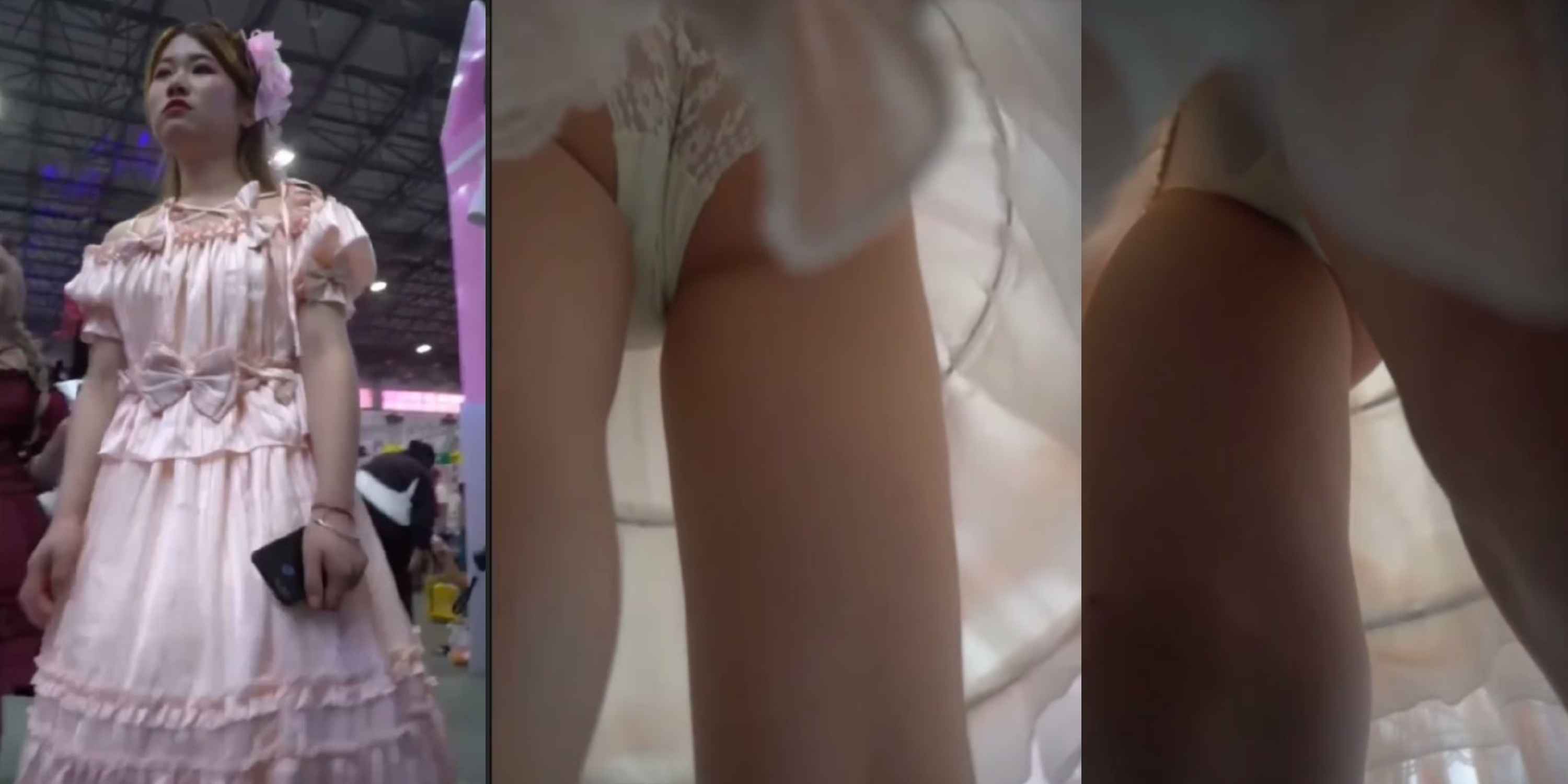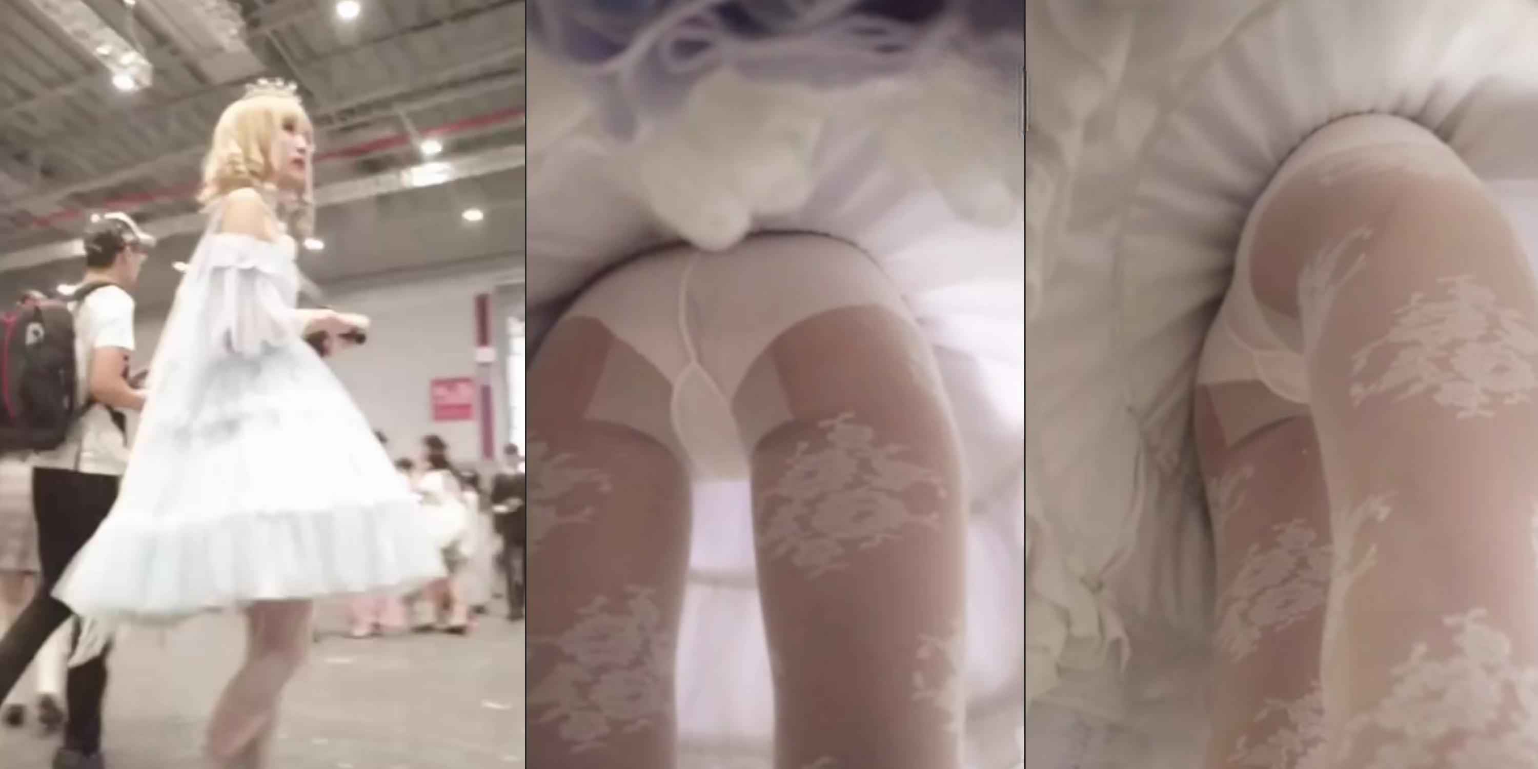 公主裙,层层纱裙下白色内裤被低角度抄底全现